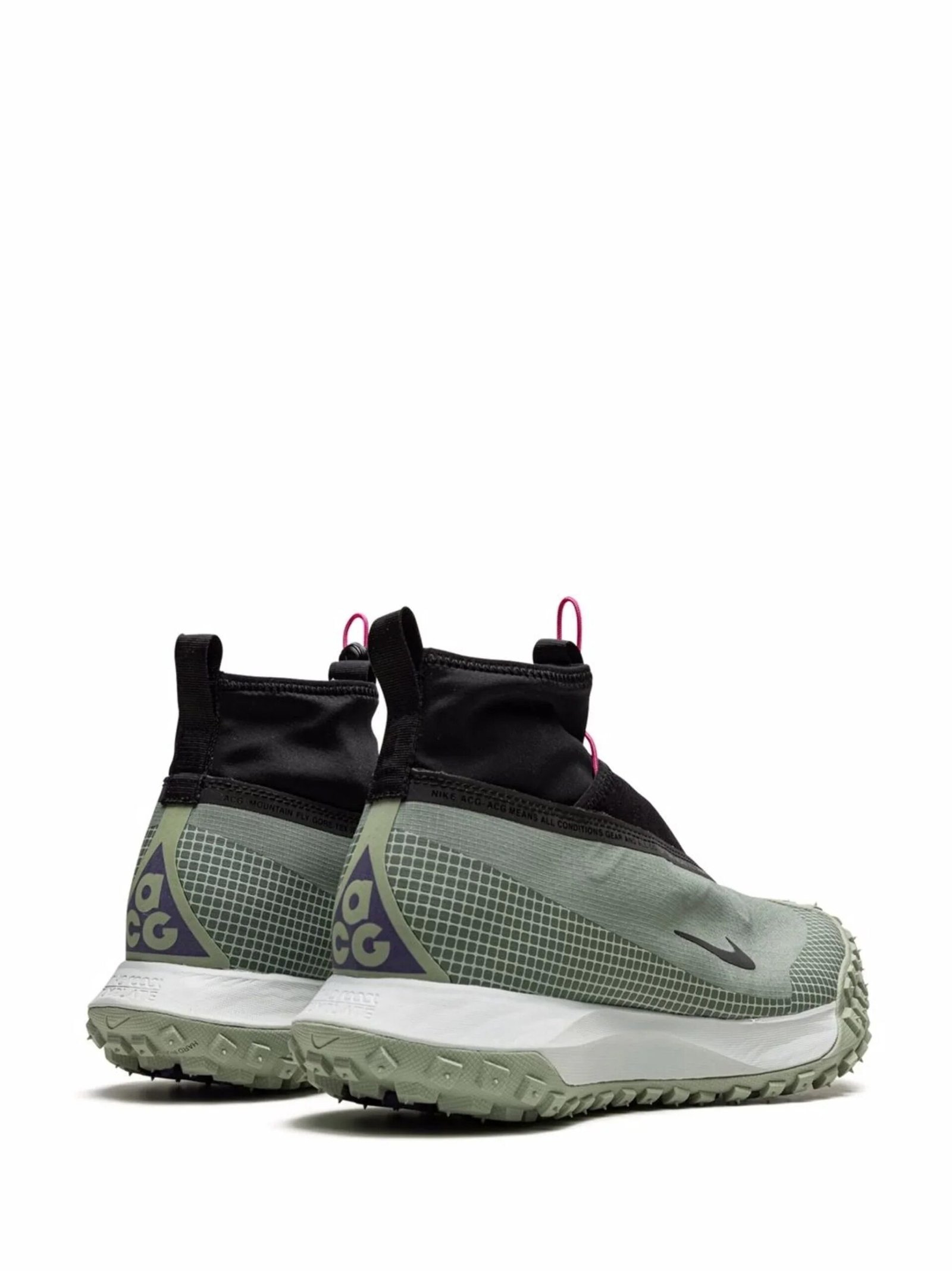 These black and grey Nike ACG Mountain Fly sneakers are made for all surfaces: mountains, cities, deserts or even for working from home. Their high-top silhouette is equipped with a lightweight, Gore-TEX upper with an easy drawstring fastening while the rubber sole offers comfort and traction.