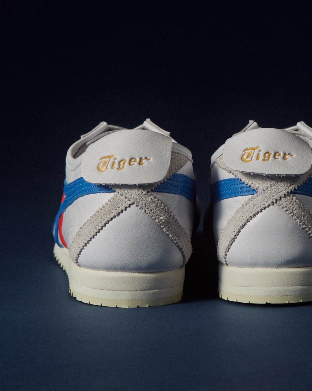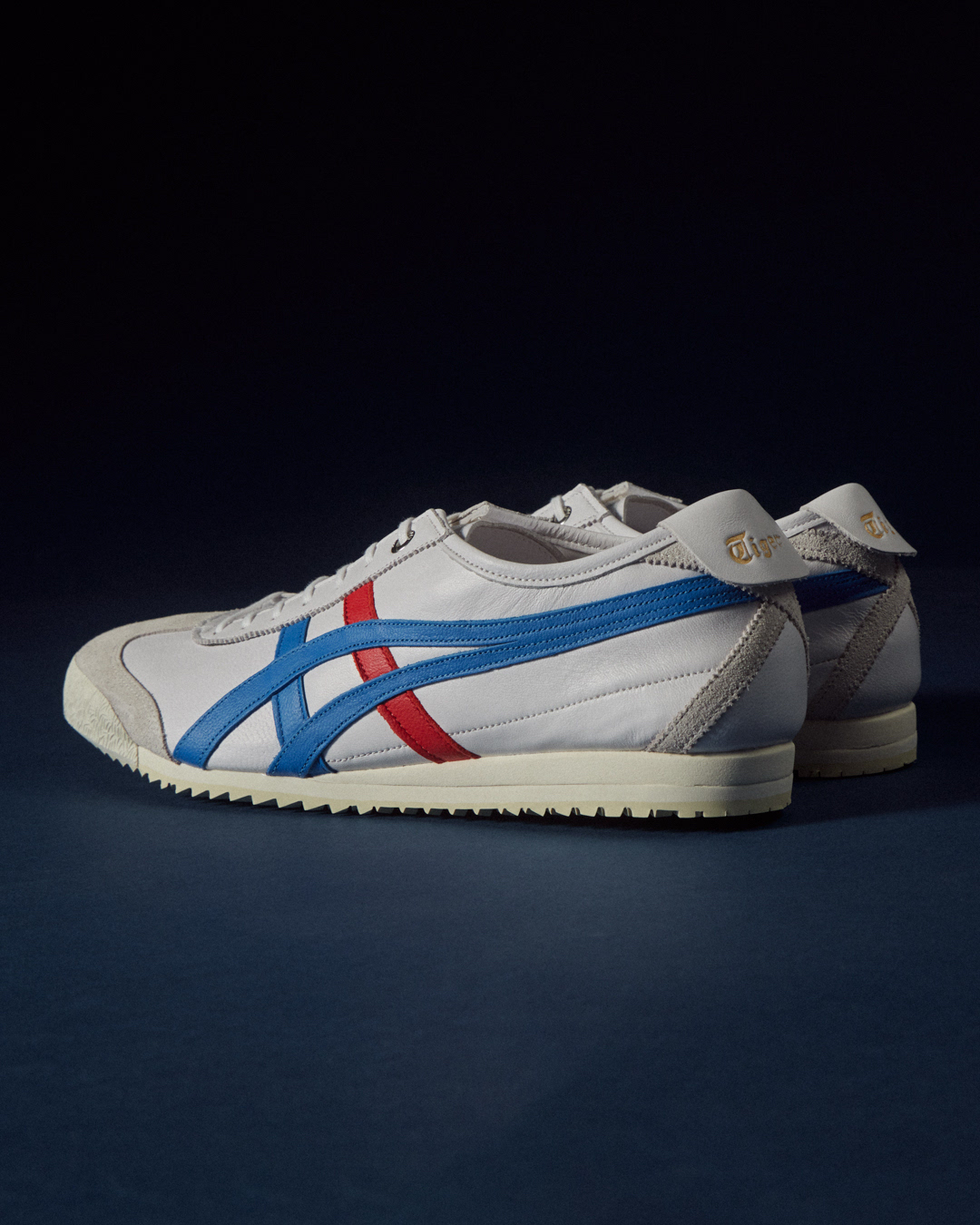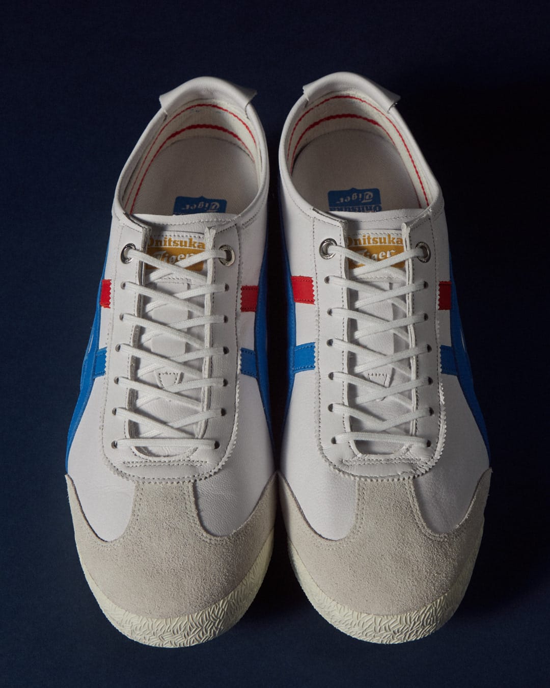 Inspired by vintage track shoes, this pair blends clean white leather with bold blue & red stripes — minimal, sporty, and forever stylish.