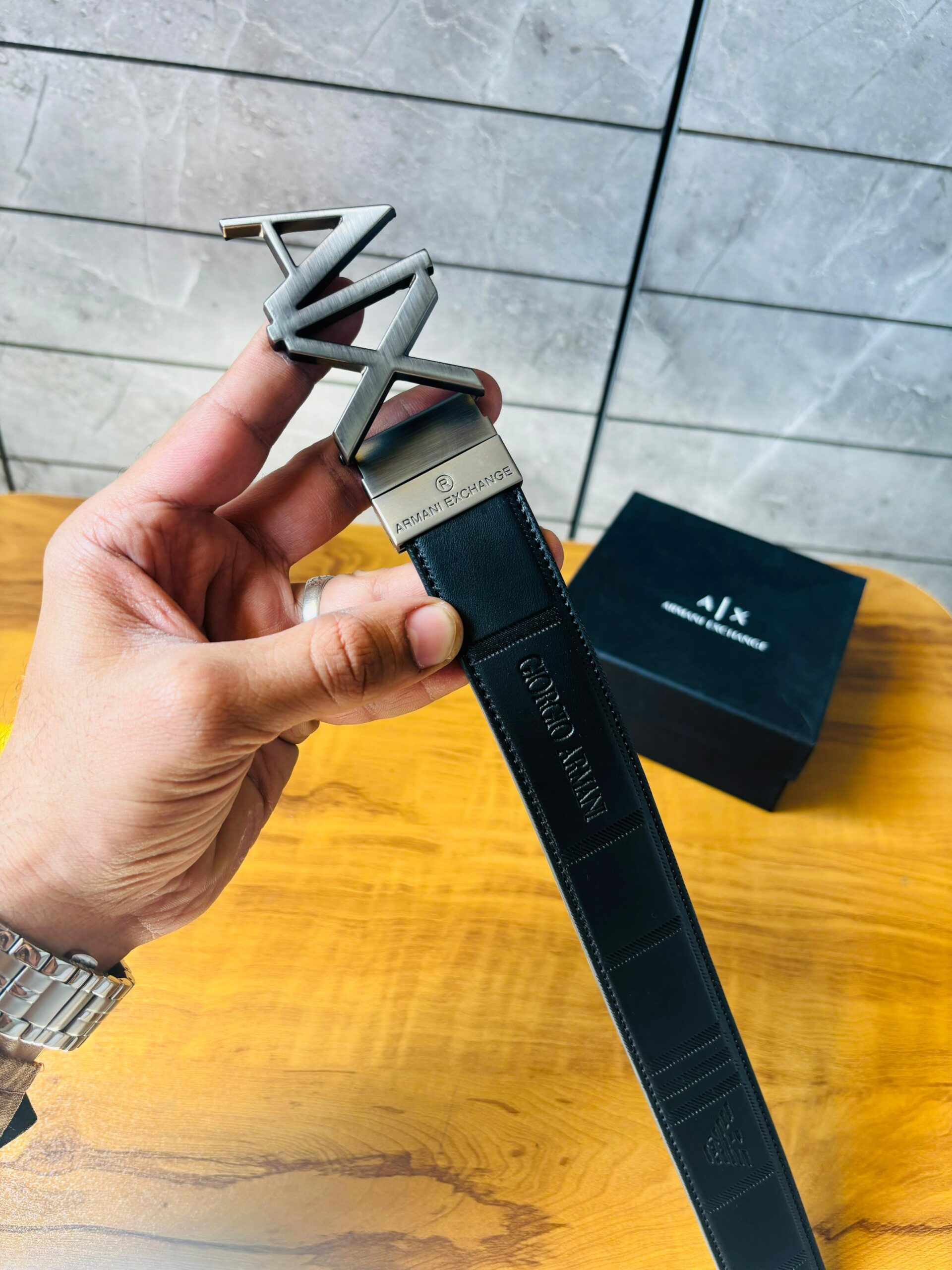 🔹 Style: Classic AX Signature Buckle Design