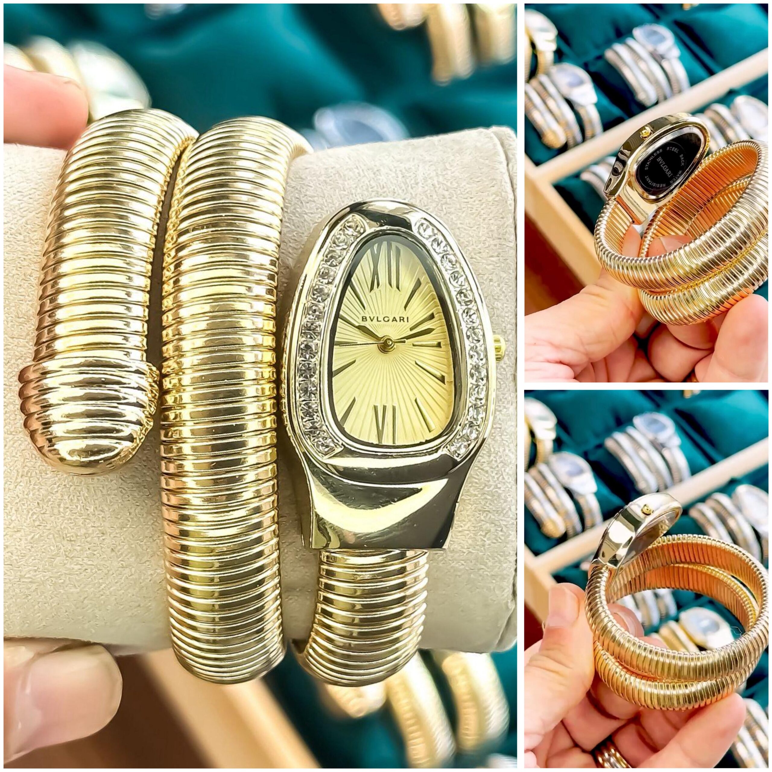 Introducing the BVLGR SNAKE Gold Watch, a true symbol of timeless beauty and luxury craftsmanship. Its signature snake-inspired coil bracelet and teardrop-shaped dial make it a stunning statement piece for every occasion.