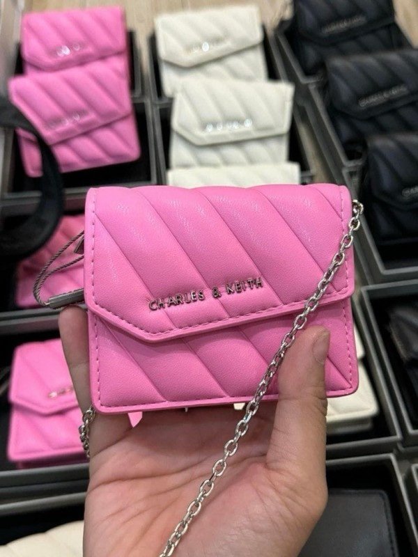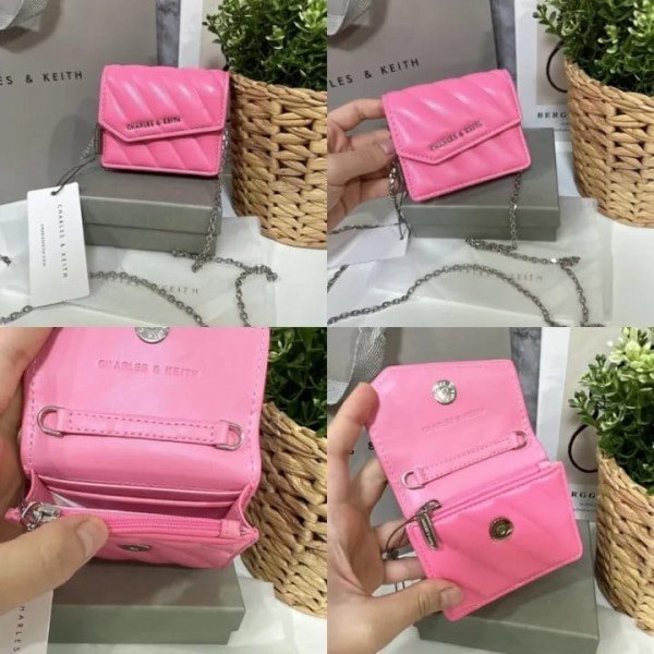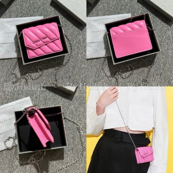 Charles & Keith Mini Asymmetric Flap Sling Bag With OG Box & Dust Bag (Pink – 787)(BSB)