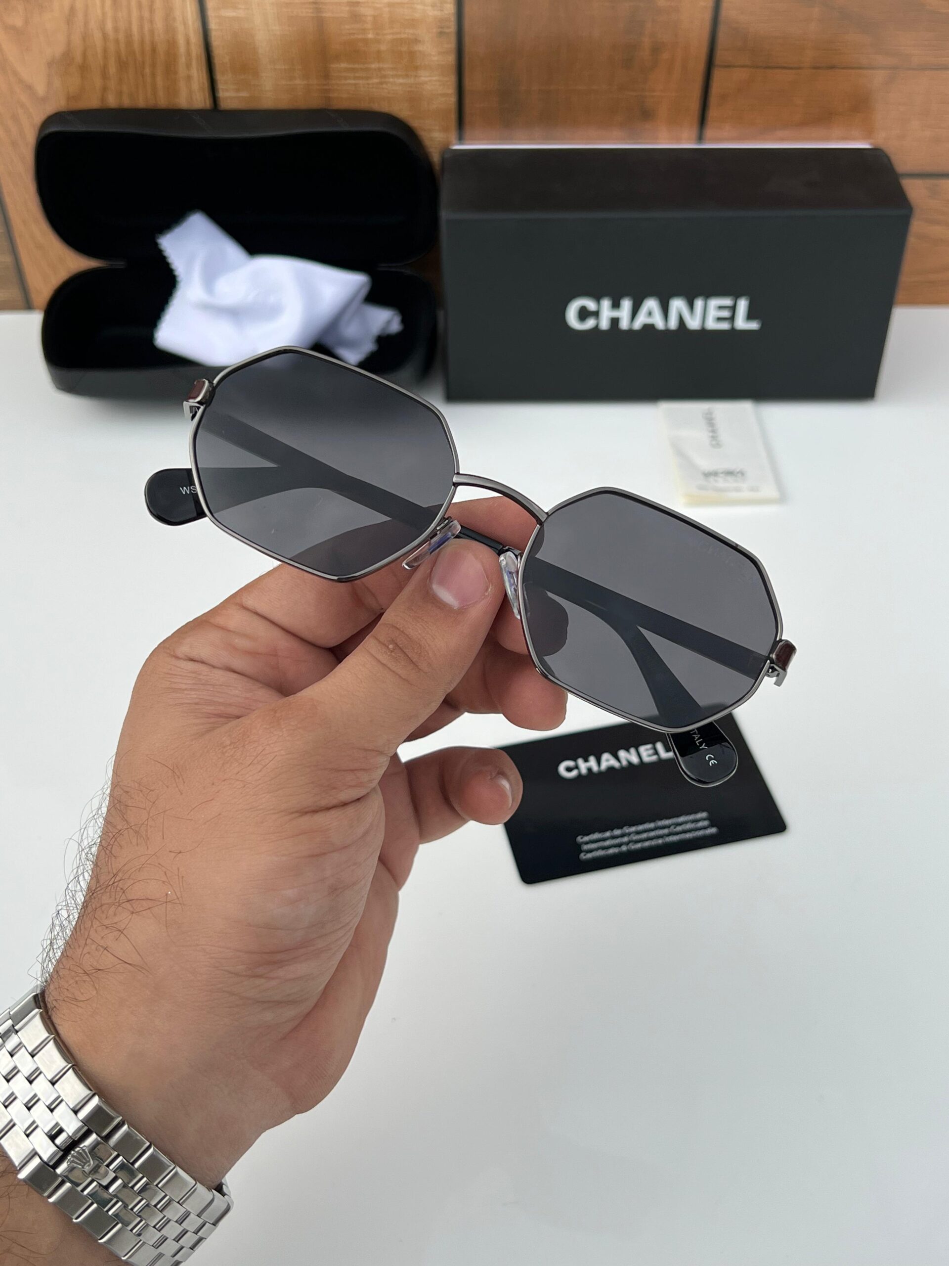 Includes: Sunglasses, Case, Cleaning Cloth, Certificate of Authenticity, and Brand Documentation