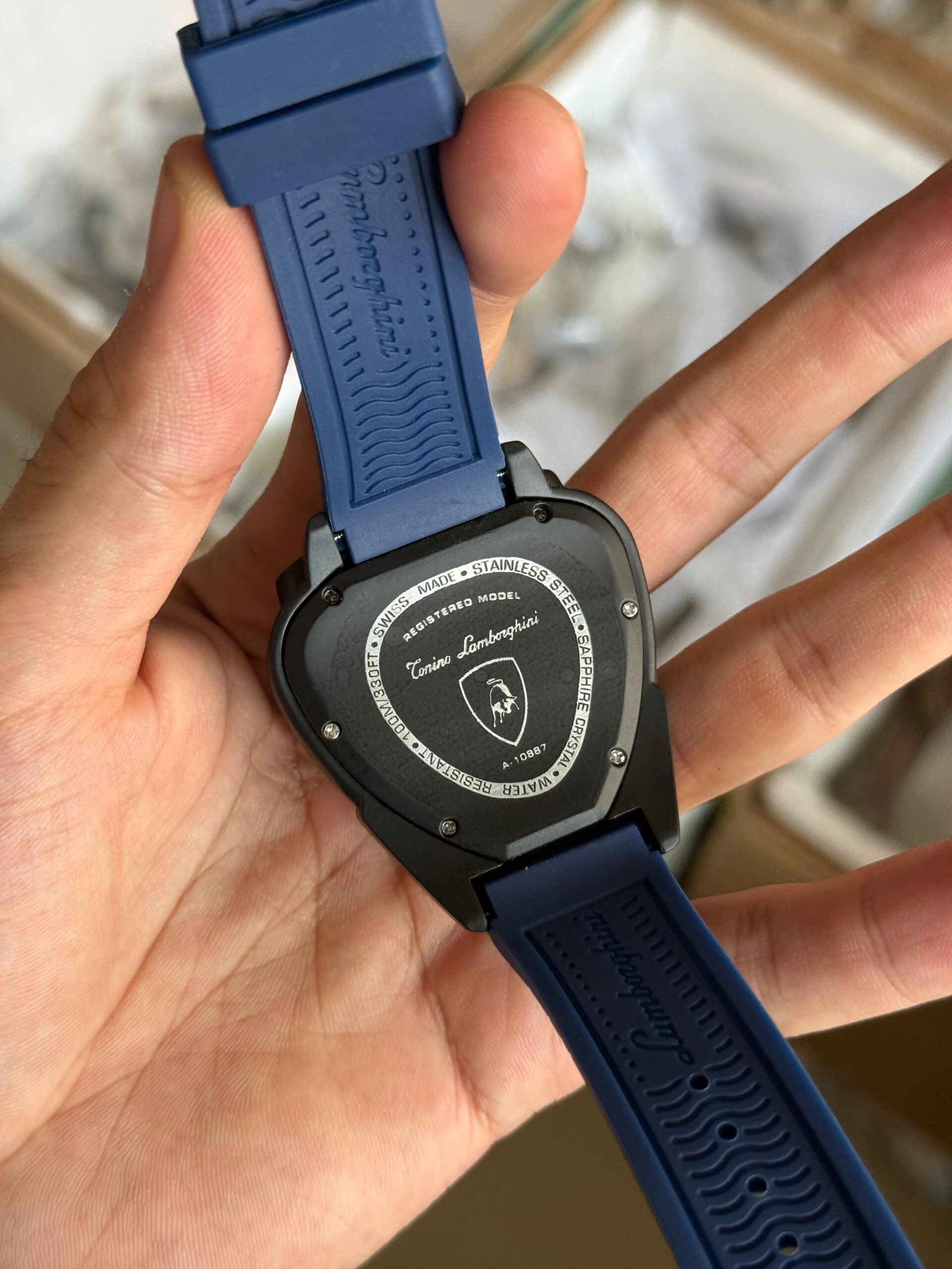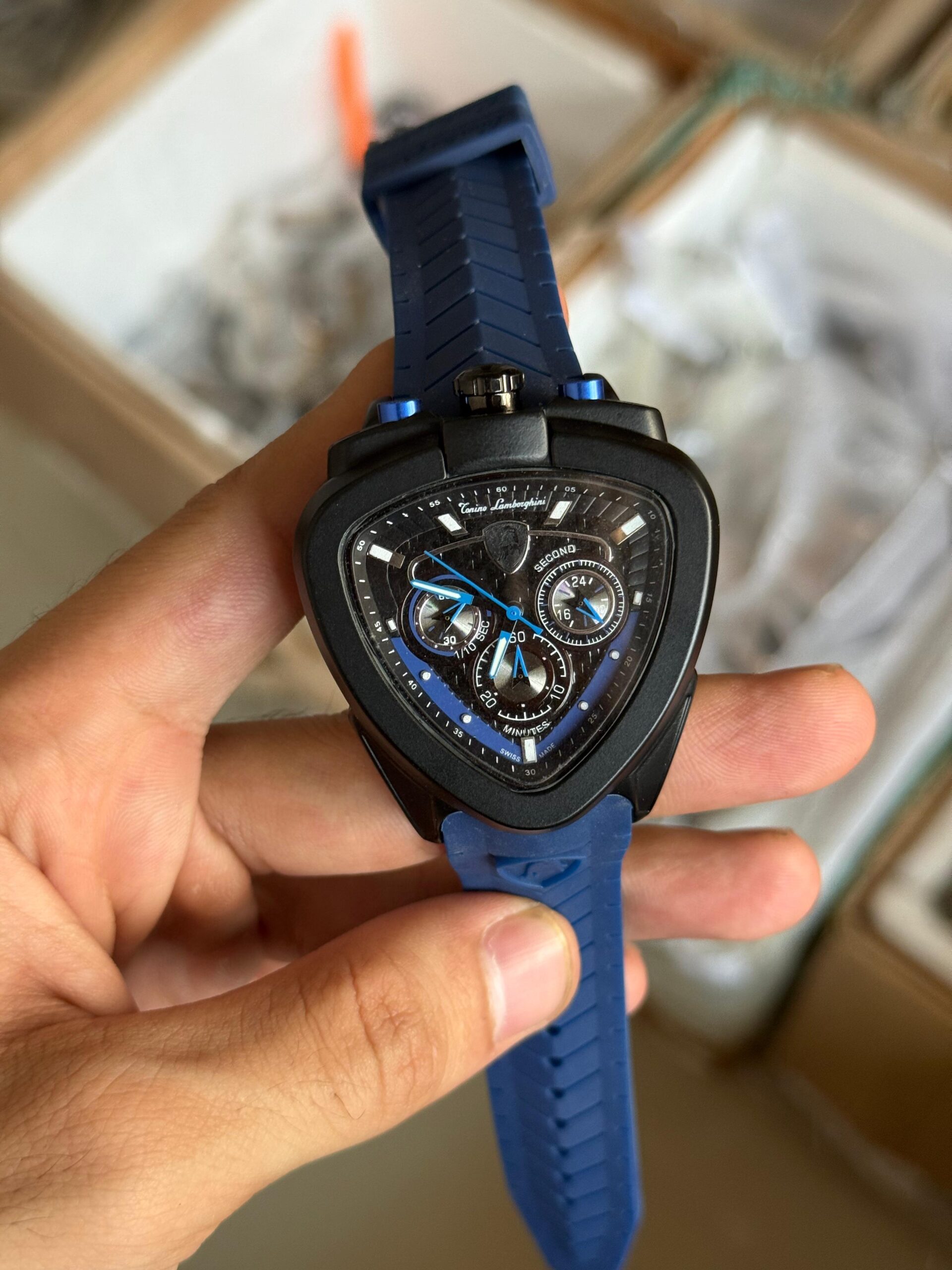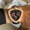 This bold timepiece features a unique triangle-shaped dial, giving it a distinct automotive aesthetic inspired by supercars 🏁.