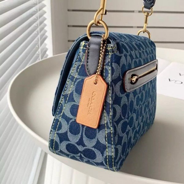 Coach Soft Tabby Shoulder Bag In Signature Denim With OG Box Dust Bag (Denim-66130)(LB)