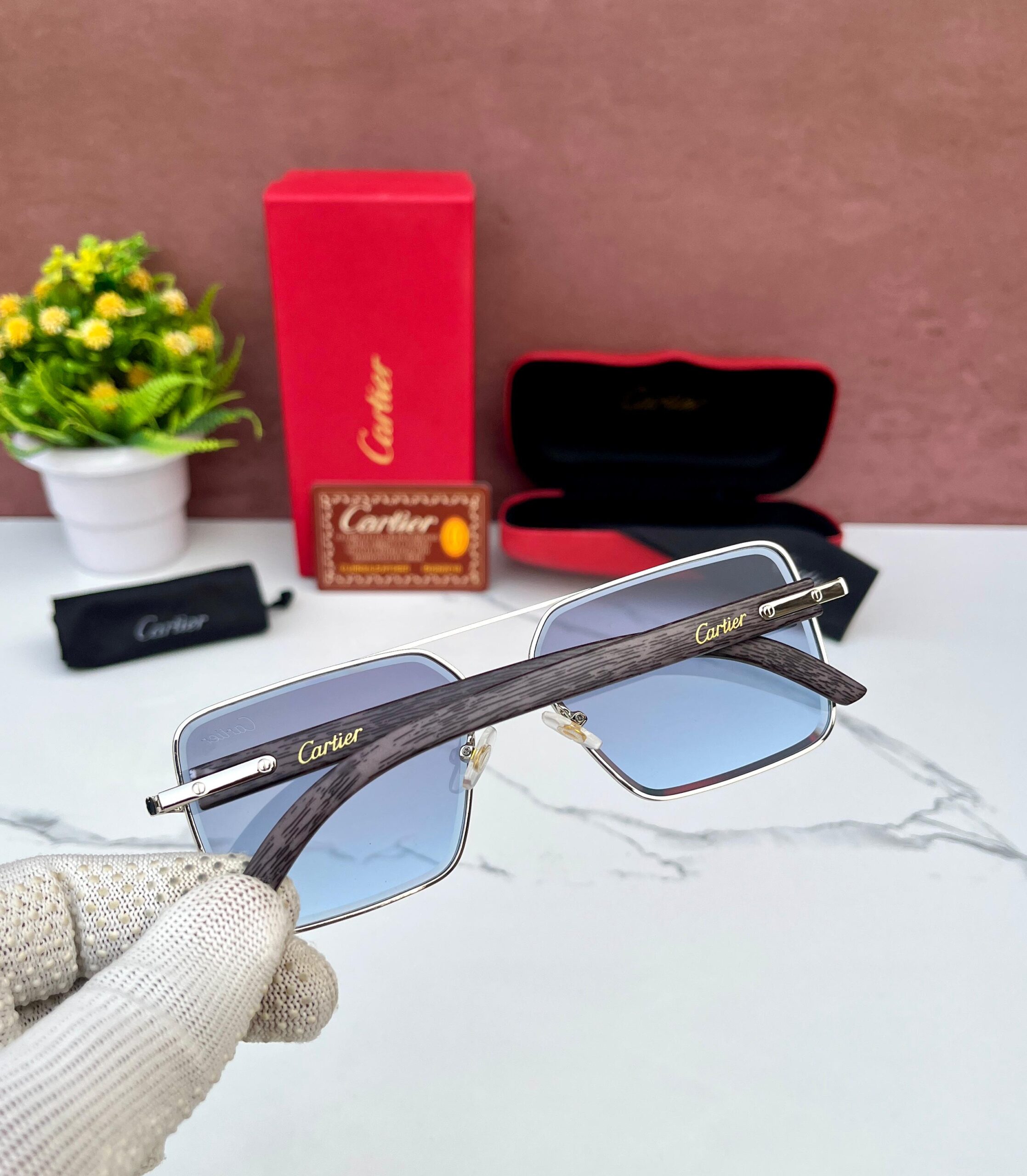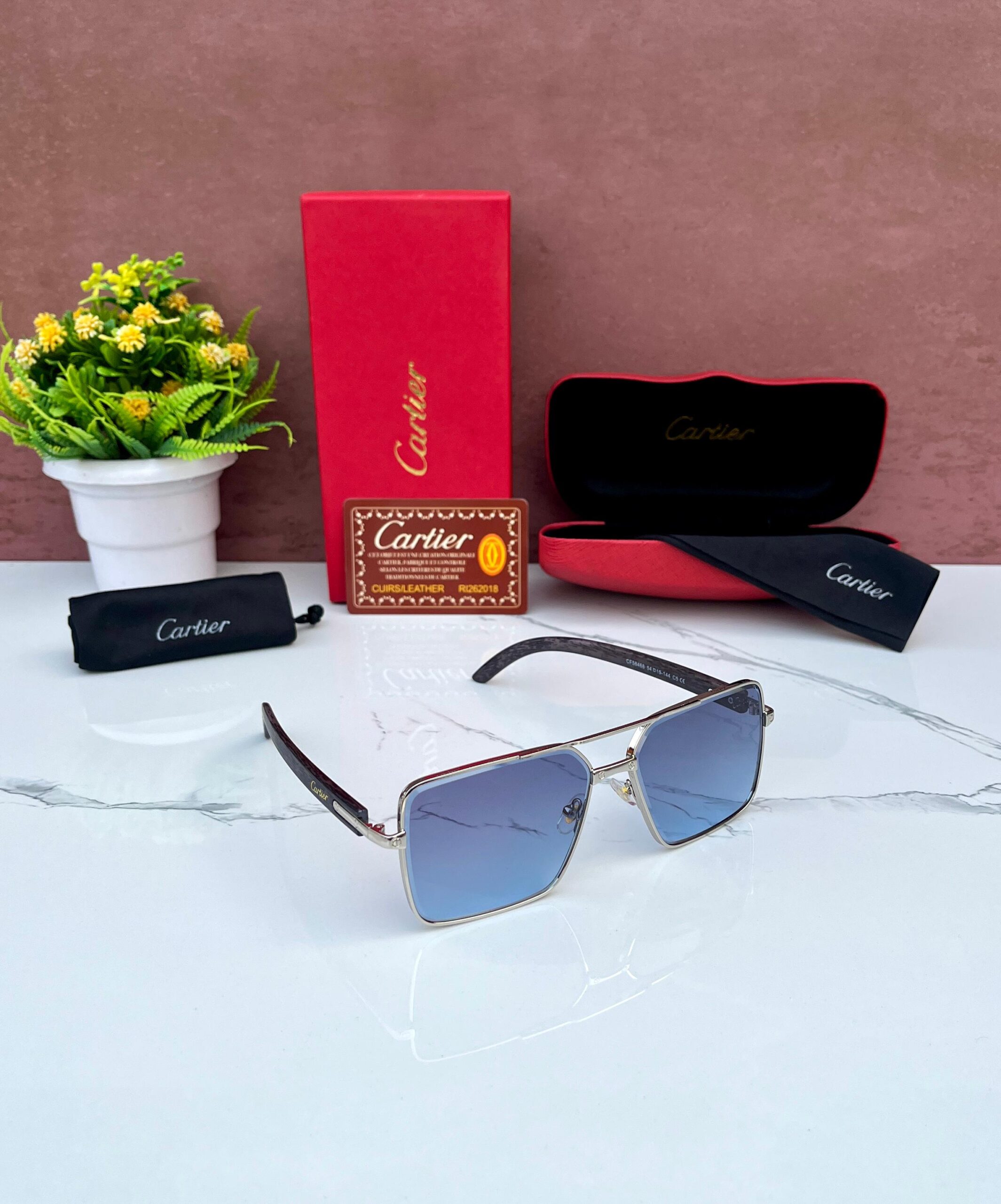 CRTR 58468 SUNGLASSES [BLUE / SILVER / BROWN WOODEN TEXTURE]