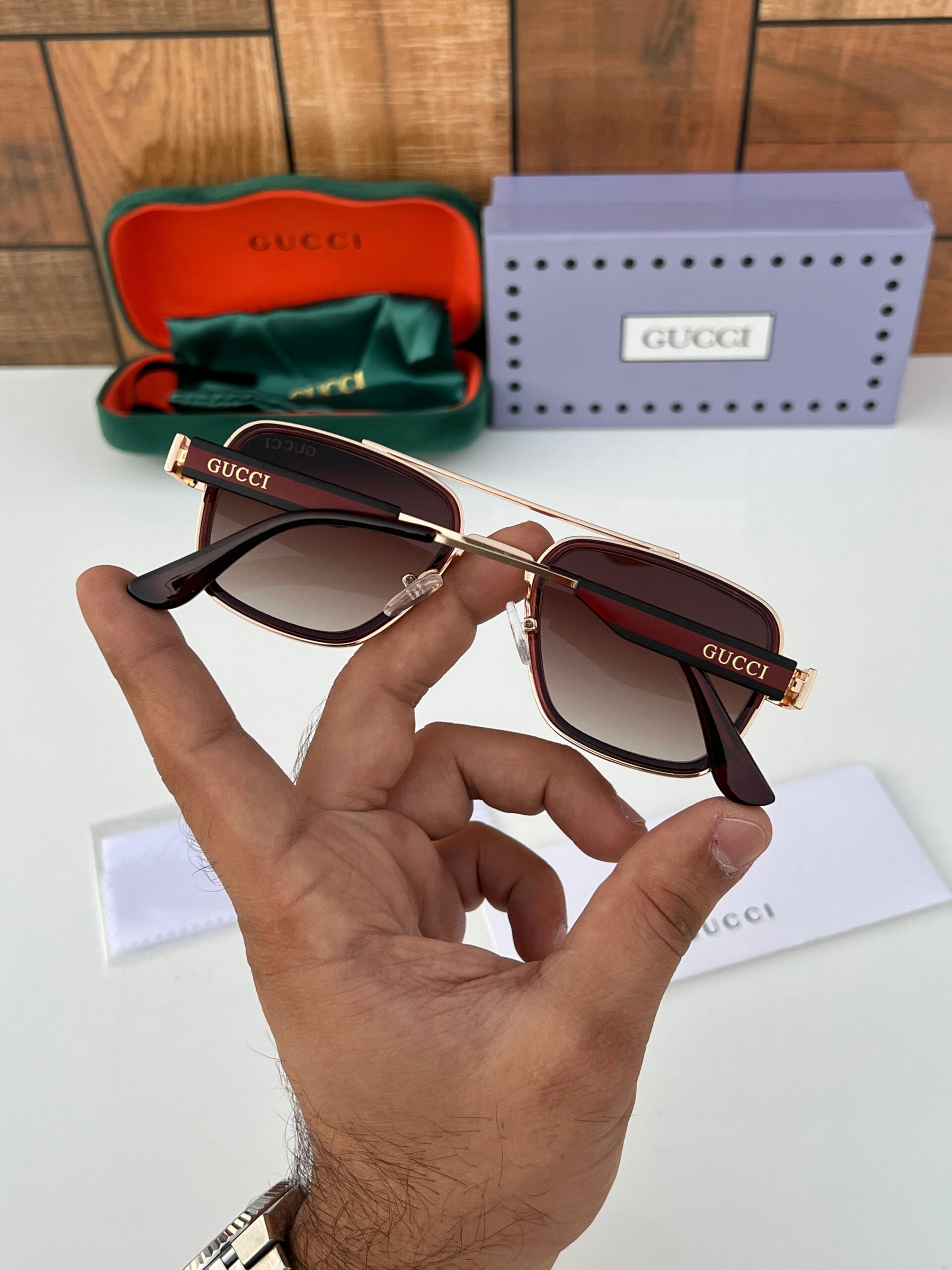 Step up your fashion game with these stunning GC 617 Sunglasses. Crafted with a gold metal frame and dark brown gradient lenses, these shades perfectly balance luxury, comfort, and durability — ideal for daily wear or travel.