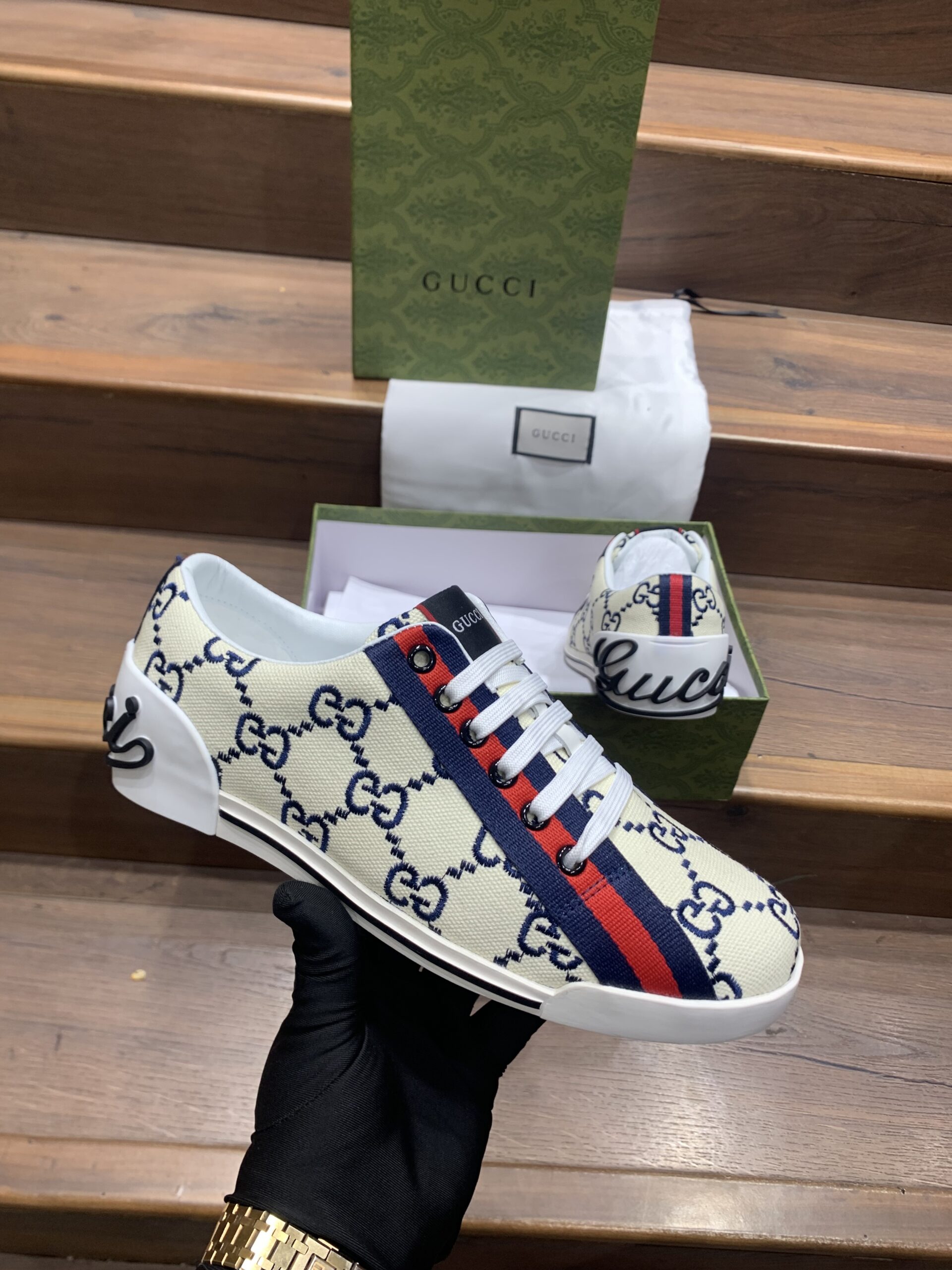 GUCC_I VINTAGE EMBROIDERED GG LOGO CREAM PREMIUM SNEAKER