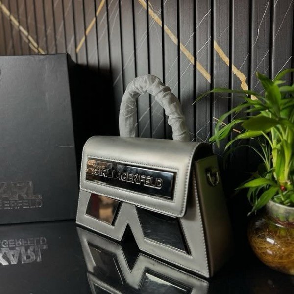 Karl Lagerfeld IKON Crossbody Shoulder Bag With OG Box & Dust Bag (Silver – 922)