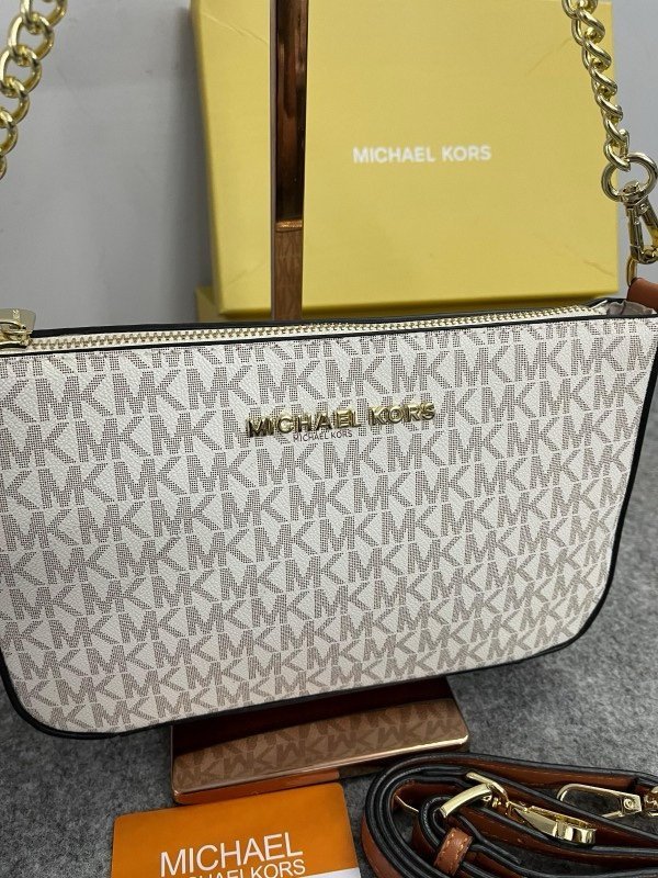 Michael Kors Jet Set Chain Pouchette Bag With OG Box & Dust Bag (Beige Brown 22318)
