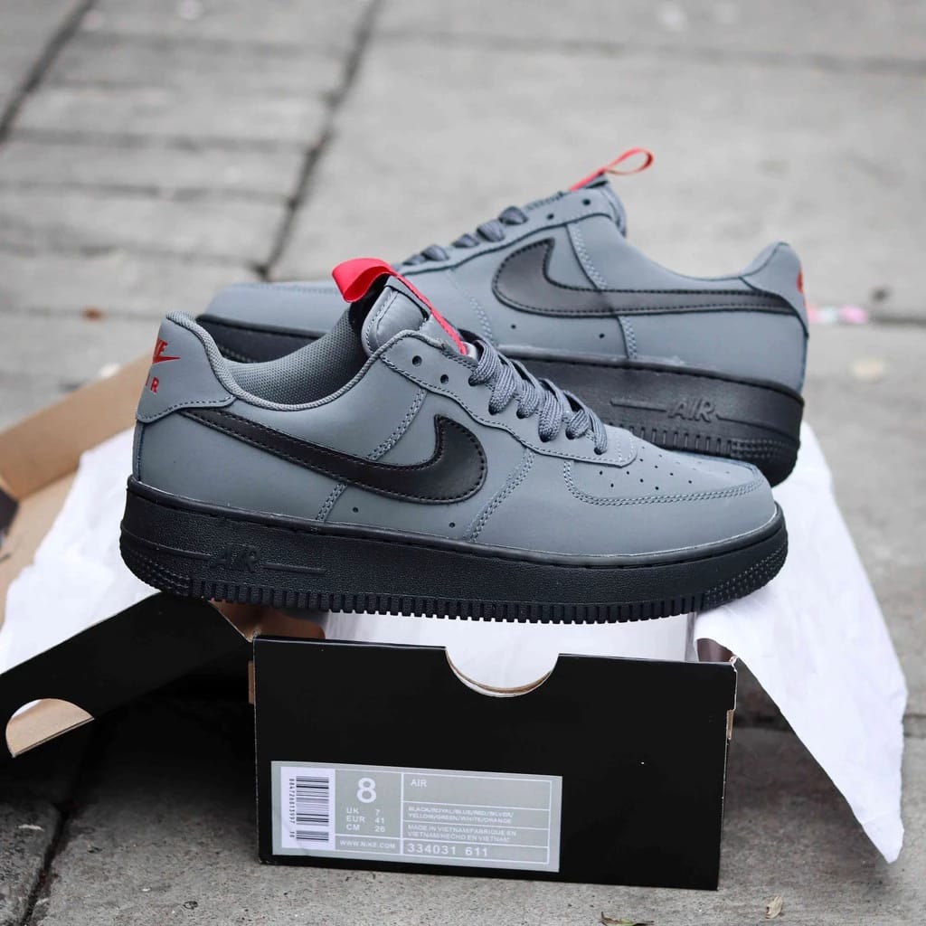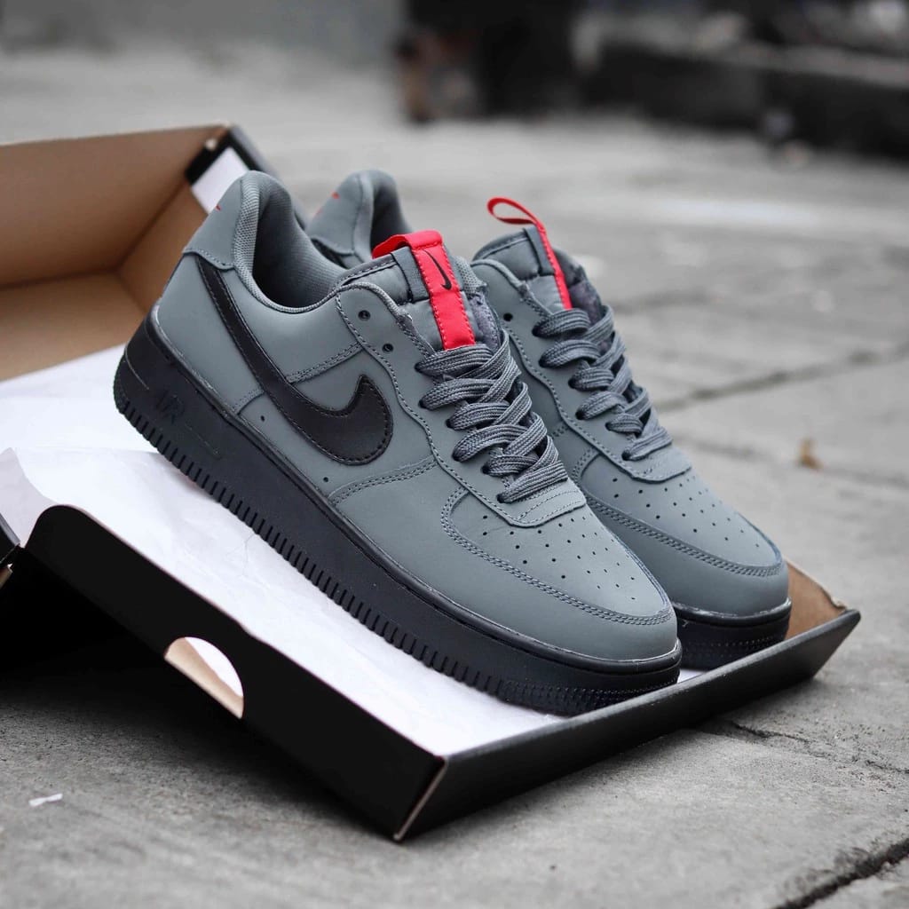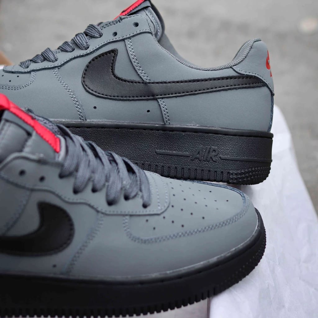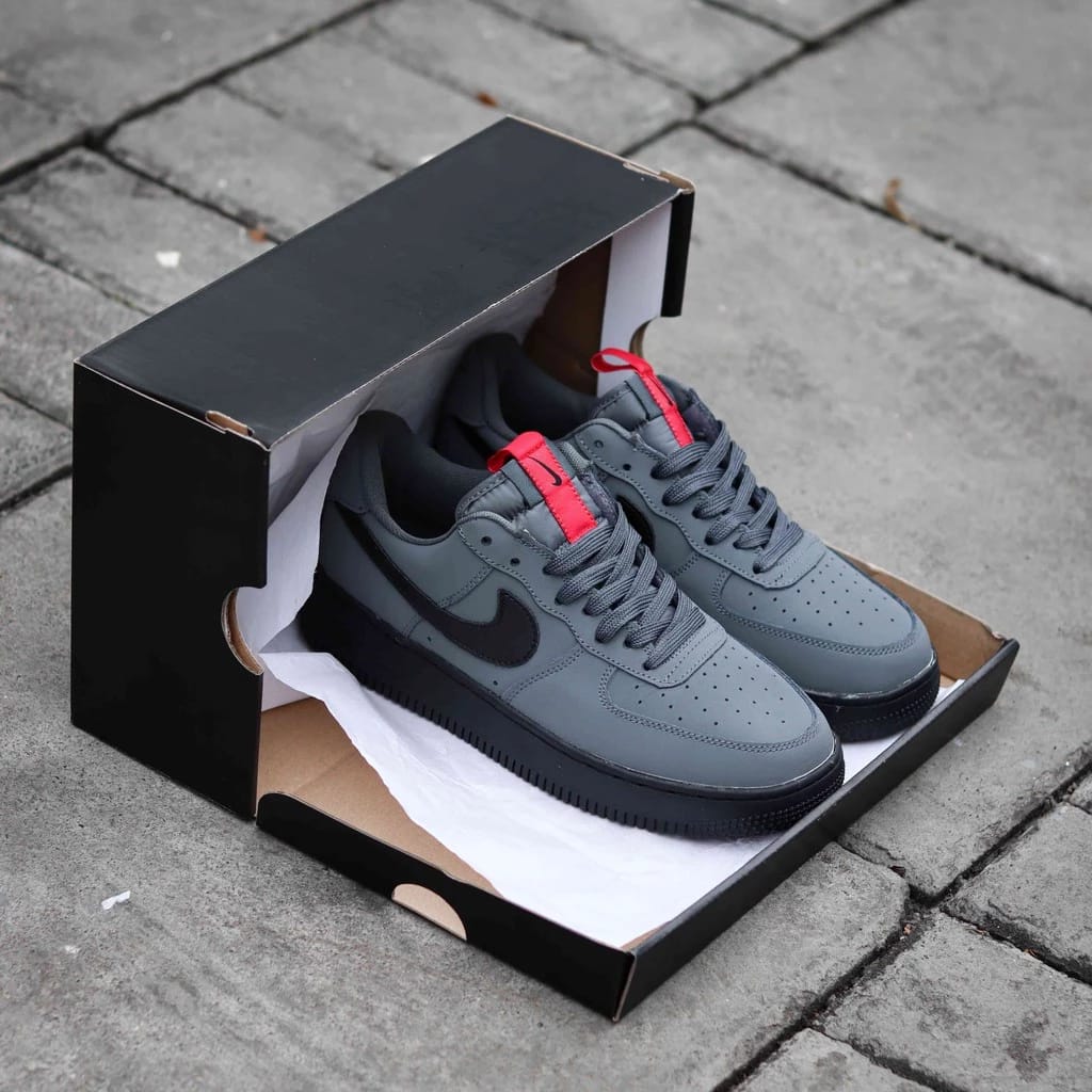 Step into bold street style with the NK airforce 1 low “ANTHRACITE GREY” Sneakers – designed for comfort, durability, and modern urban fashion. With a sleek grey body, bold black swoosh, and eye-catching red pull tab, these sneakers deliver a premium look that stands out anywhere. Perfect for daily wear, casual outings, or streetwear styling.