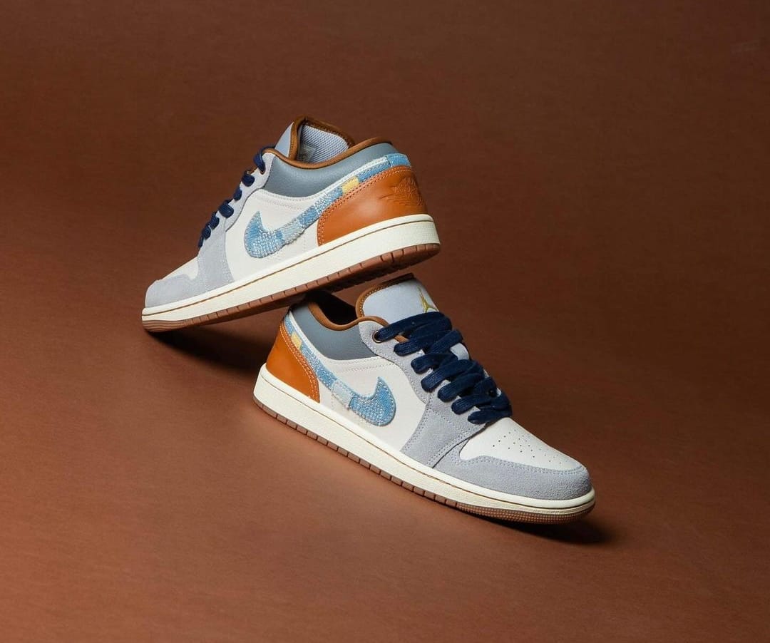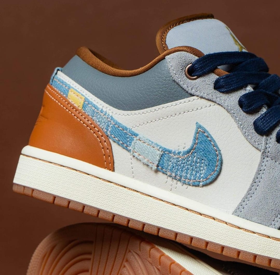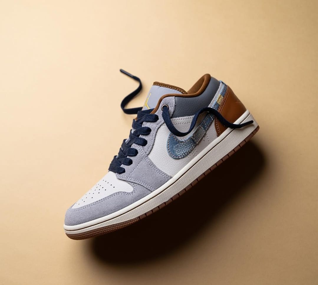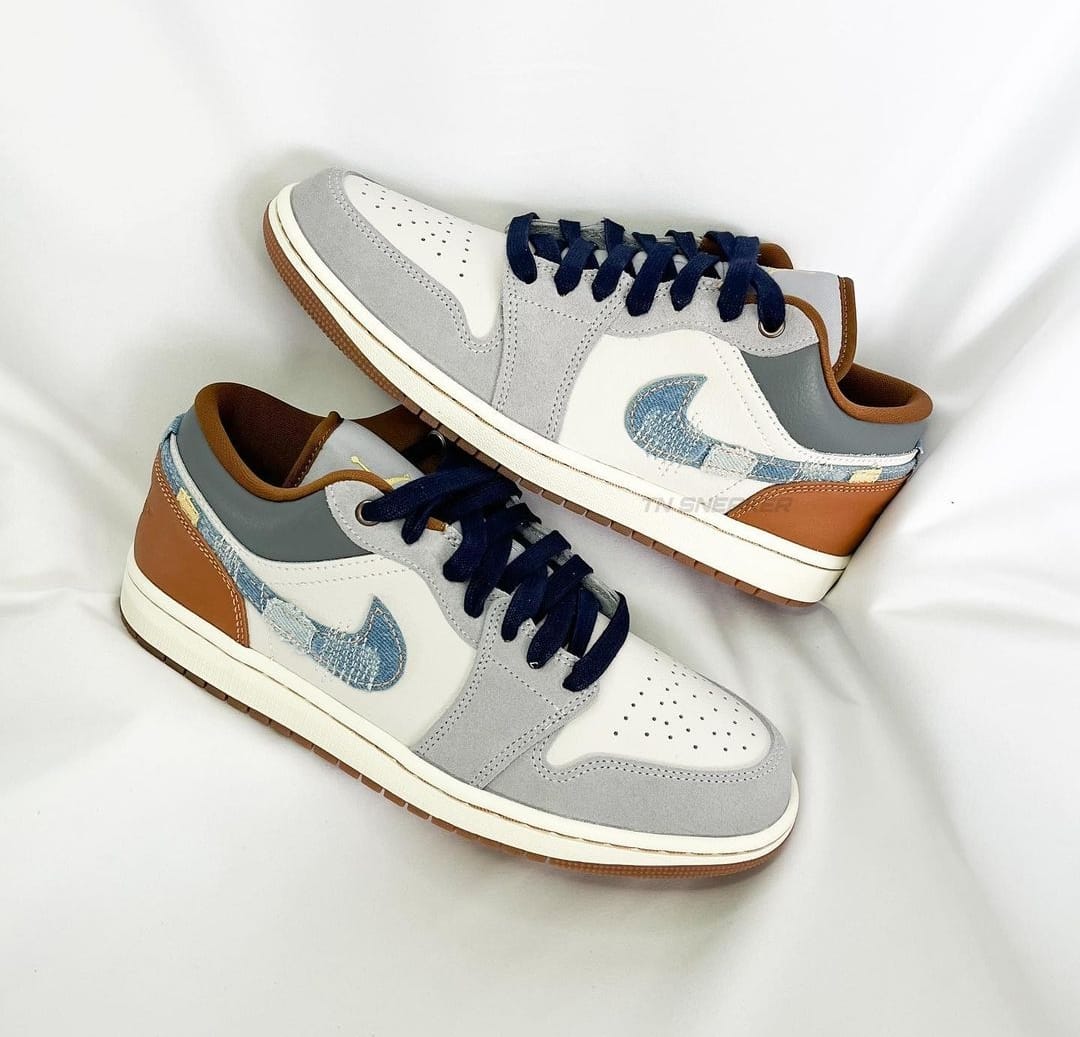 NK AIR JORDA_N RETRO 1 LOW PHANTOM DENIM SWOOSH [WHITE / GREY / BROWN / DENIM]