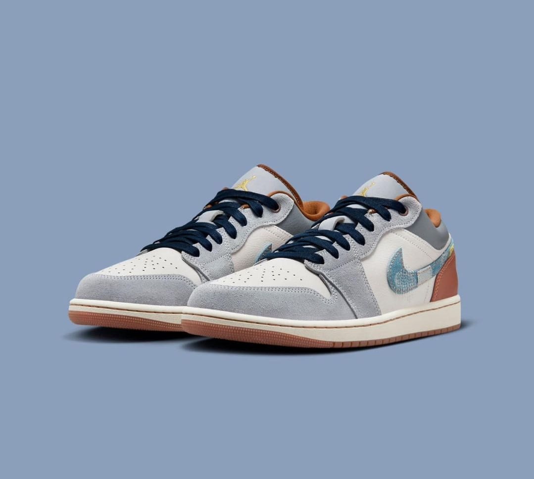 Upgrade your sneaker game with the NK Air Jorda_n 1 Low “Phantom Denim Swoosh”, a perfect blend of cool grey, denim-textured blue swoosh, and rich brown heel detailing. Designed for comfort, built for style — these kicks are made to turn heads everywhere you go.