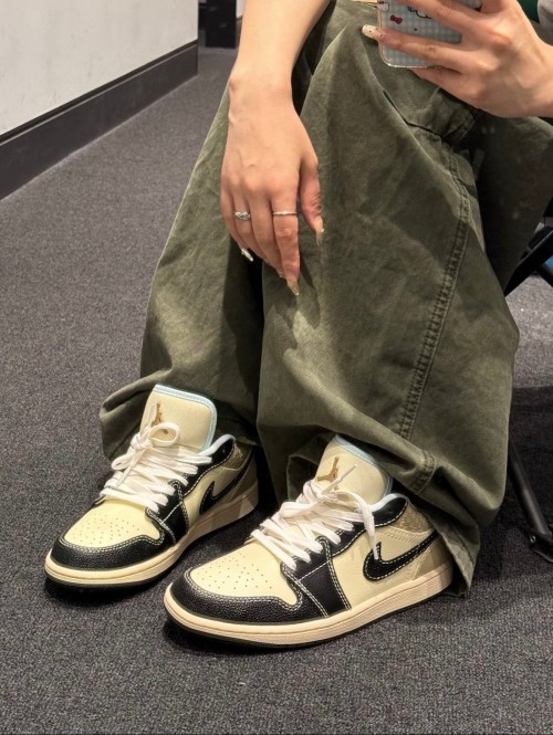 Step up your sneaker game with the NK Air Jorda_n 1 Low – Cream Black Edition 💫