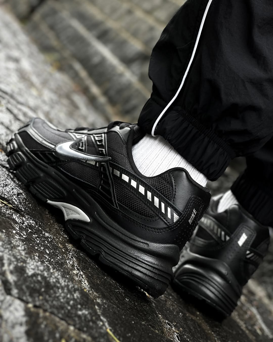 This all-black masterpiece combines breathable mesh, synthetic overlays, and reflective detailing for that sleek, futuristic vibe that turns heads wherever you go. 😎