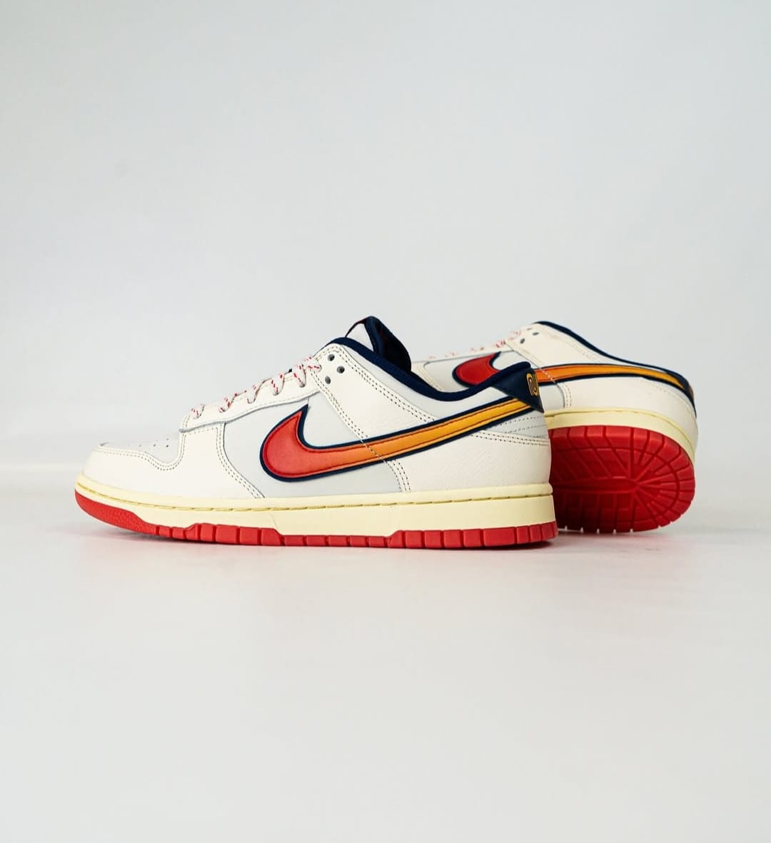 Stand out with every step in the NK Dunk Low “Red Sunset Swoosh”, a stunning pair of sneakers that brings heat to your everyday outfit. Featuring a unique triple-tone Swoosh in red, orange, and yellow—outlined in navy blue—this pair fuses vintage vibes with modern flair. Perfect for streetwear lovers and sneaker collectors alike!