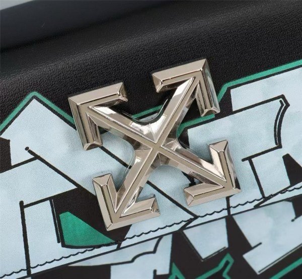 Off-White Leather Hand Held Black Graffity Jitney 1.4 Shoulder Bag (8853 Black Graffity)
