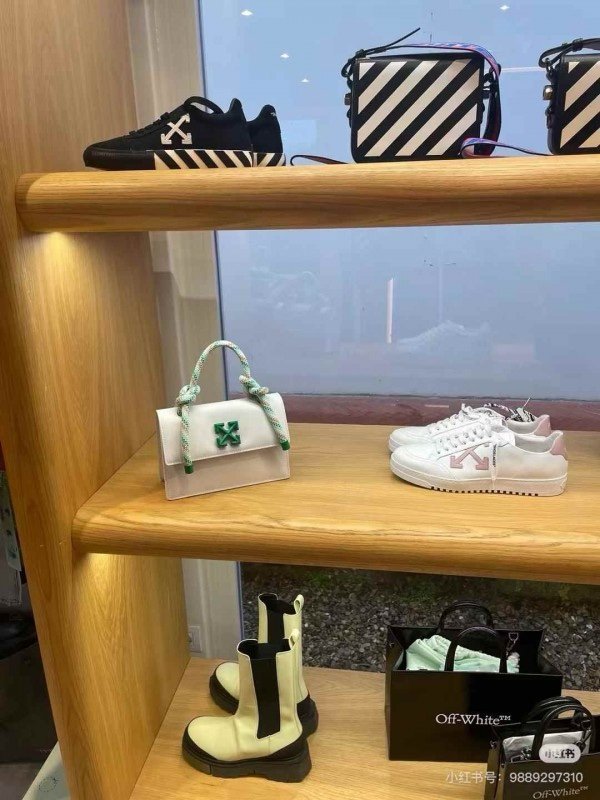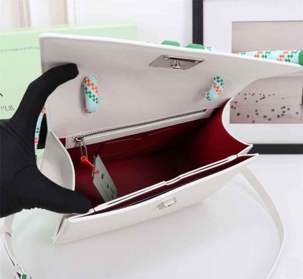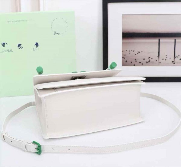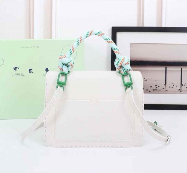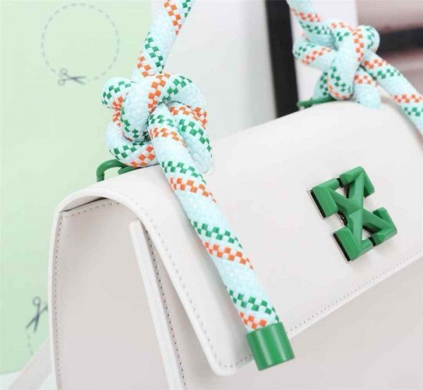 Off-White Leather Insert Gummy Greeny with Metallic Green Arrows At Front. Rope Handle Jitney 1.4 Shoulder Bag (D885311 White)