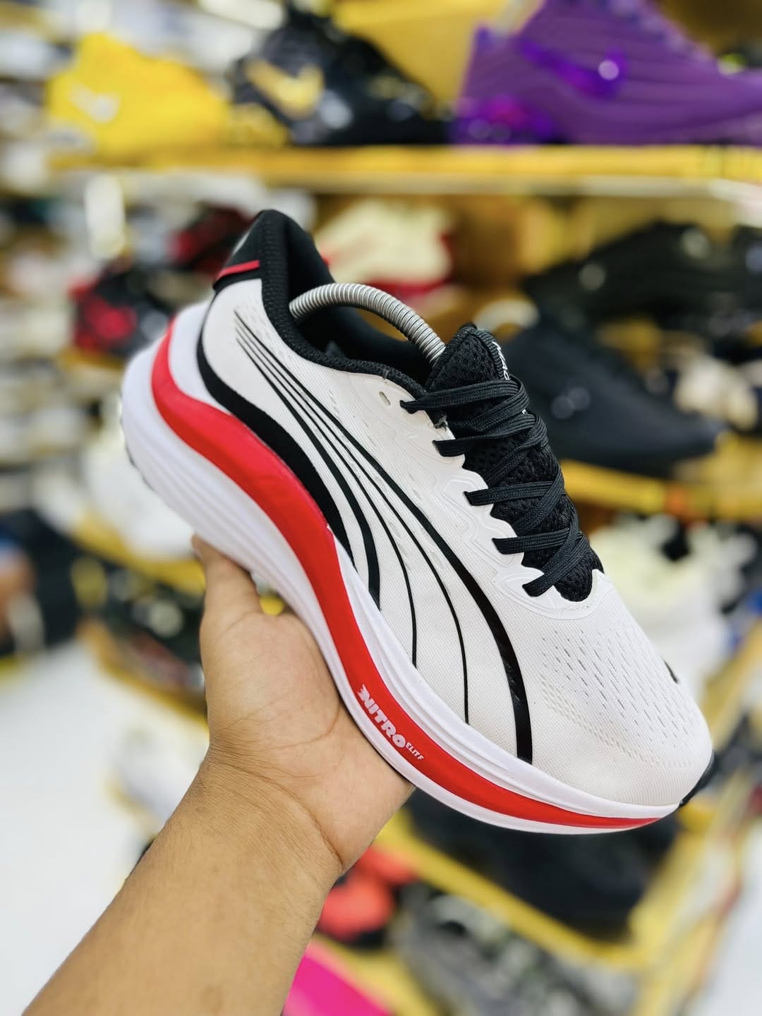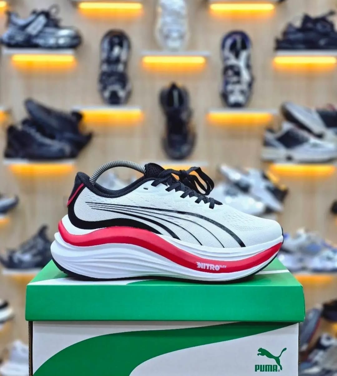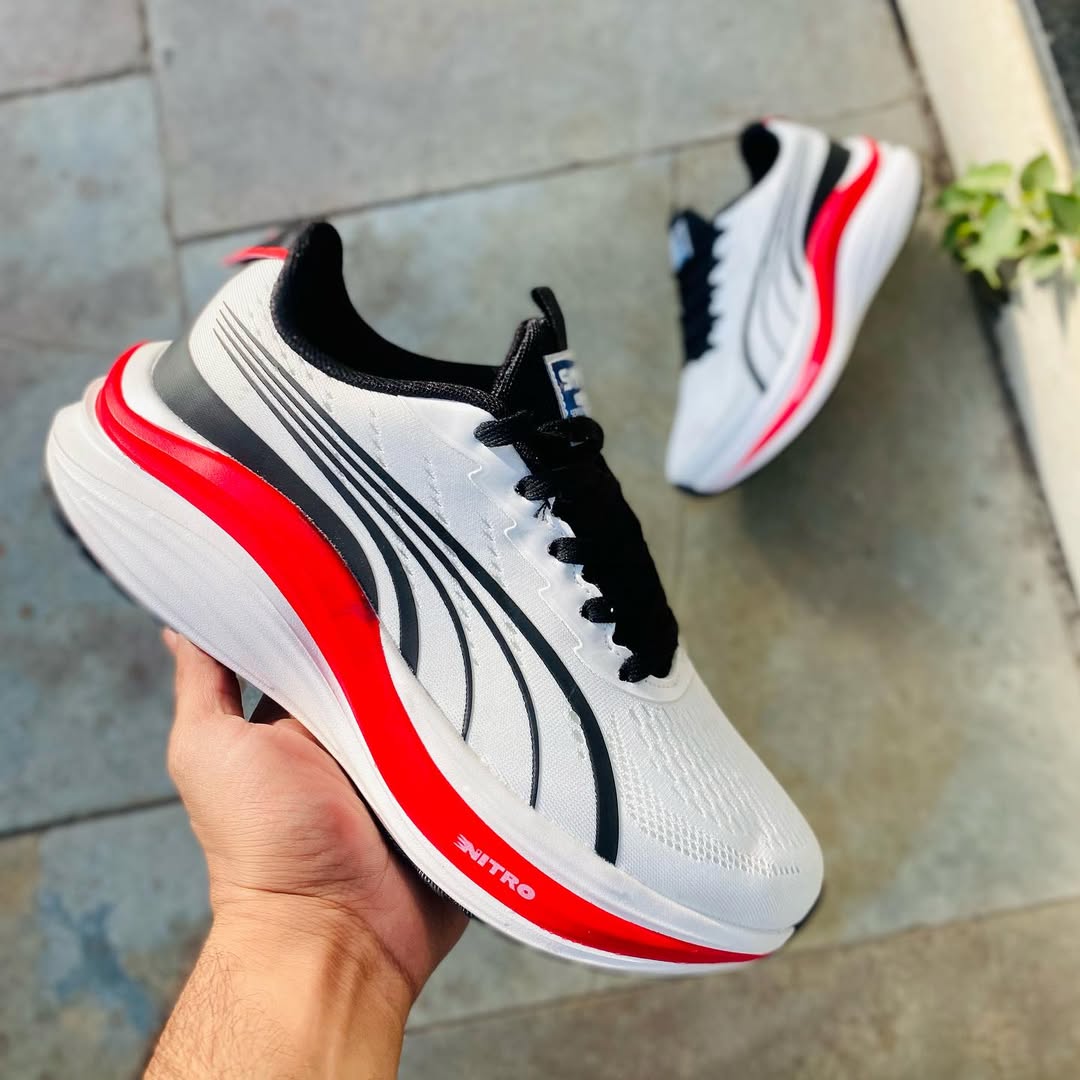 🔥 Step into comfort, speed, and style with these stylish PMA Nitro Elite performance running shoes. Designed with a lightweight breathable mesh upper, bold black detailing, and a striking red-white cushioned midsole — these shoes deliver both premium aesthetics and powerful running support.