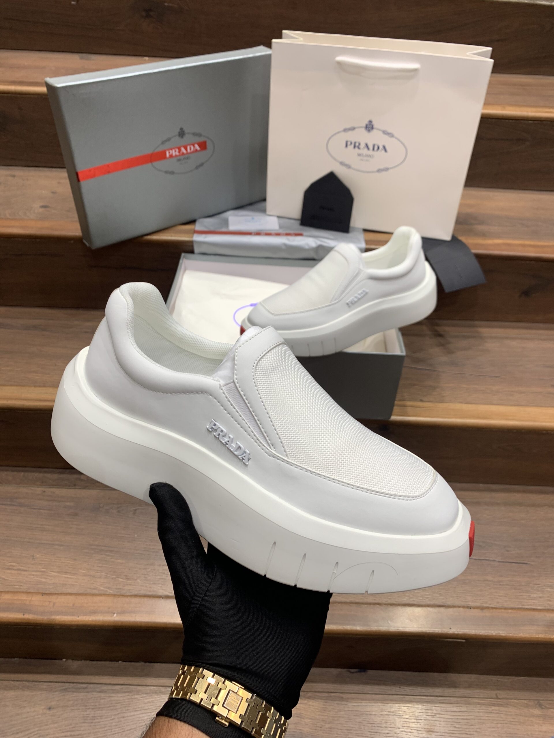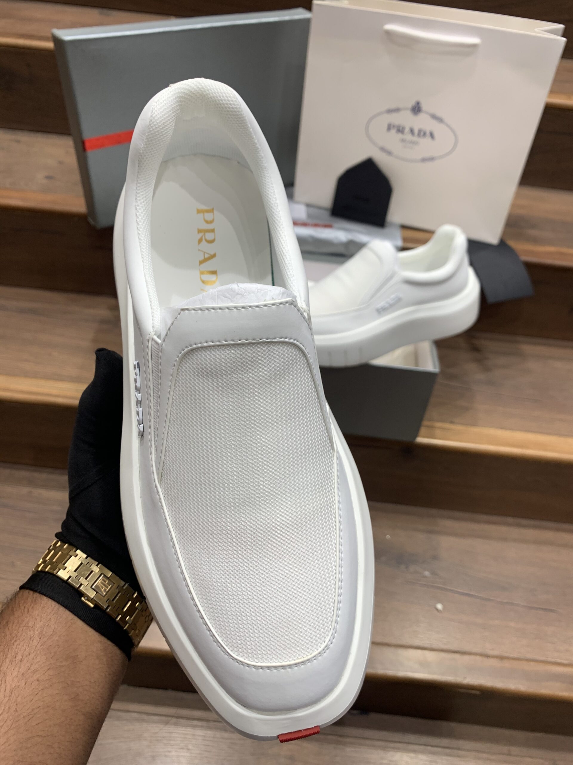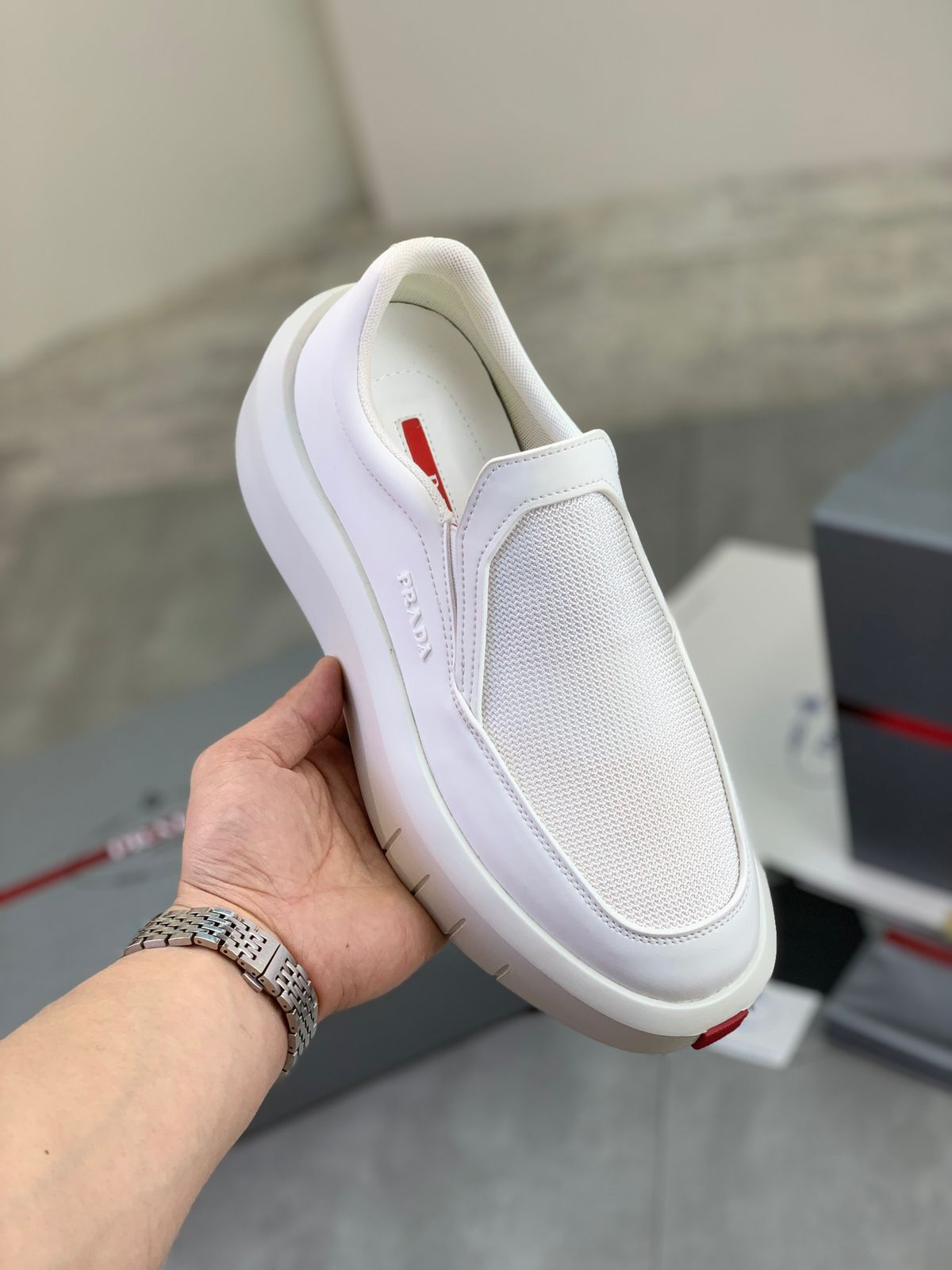 PRAD_A LOGO WHITE SLIPON PREMIUM SNEAKER
