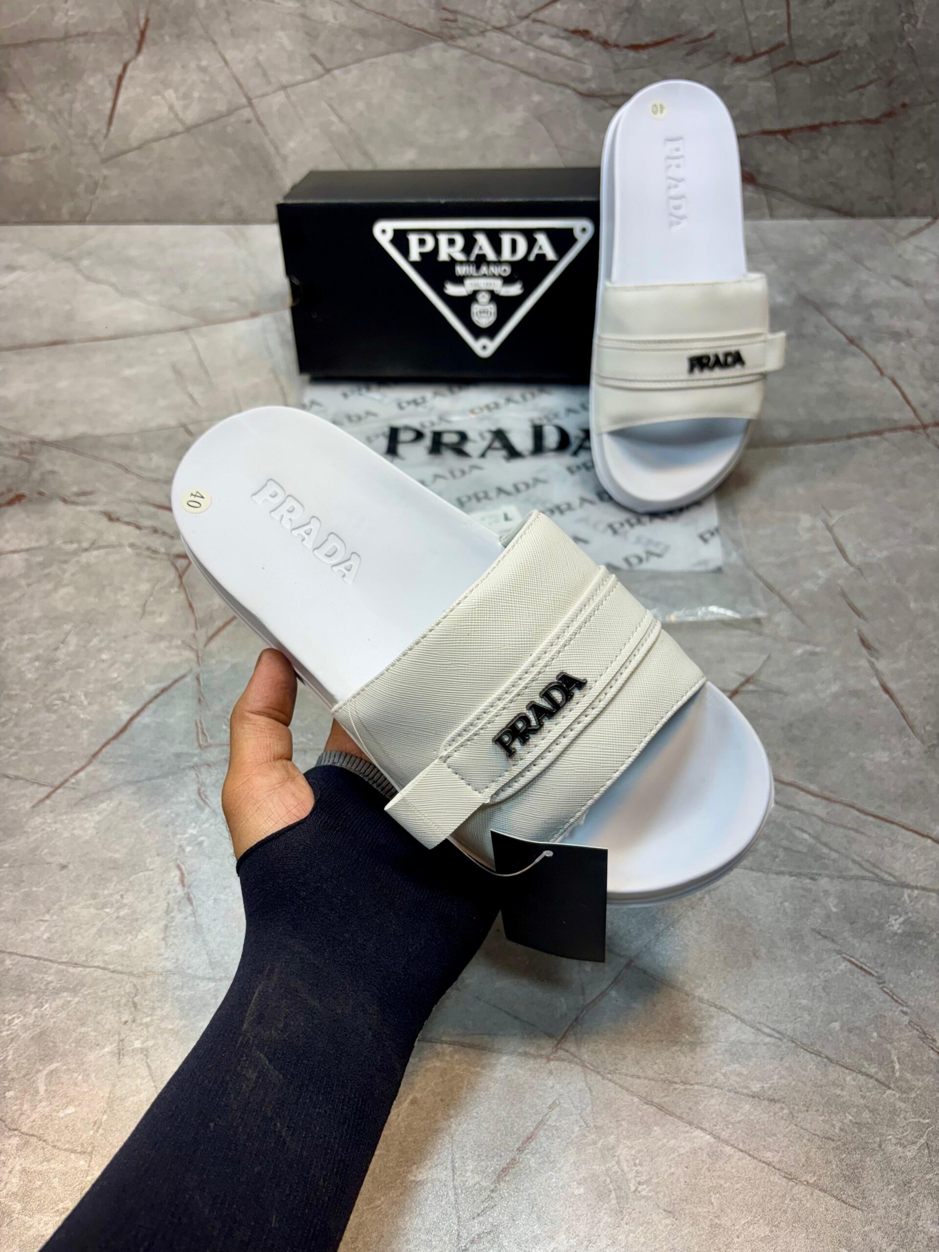 - Design: Sleek straps with the iconic PRADA logo, ensuring a modern and sophisticated look.