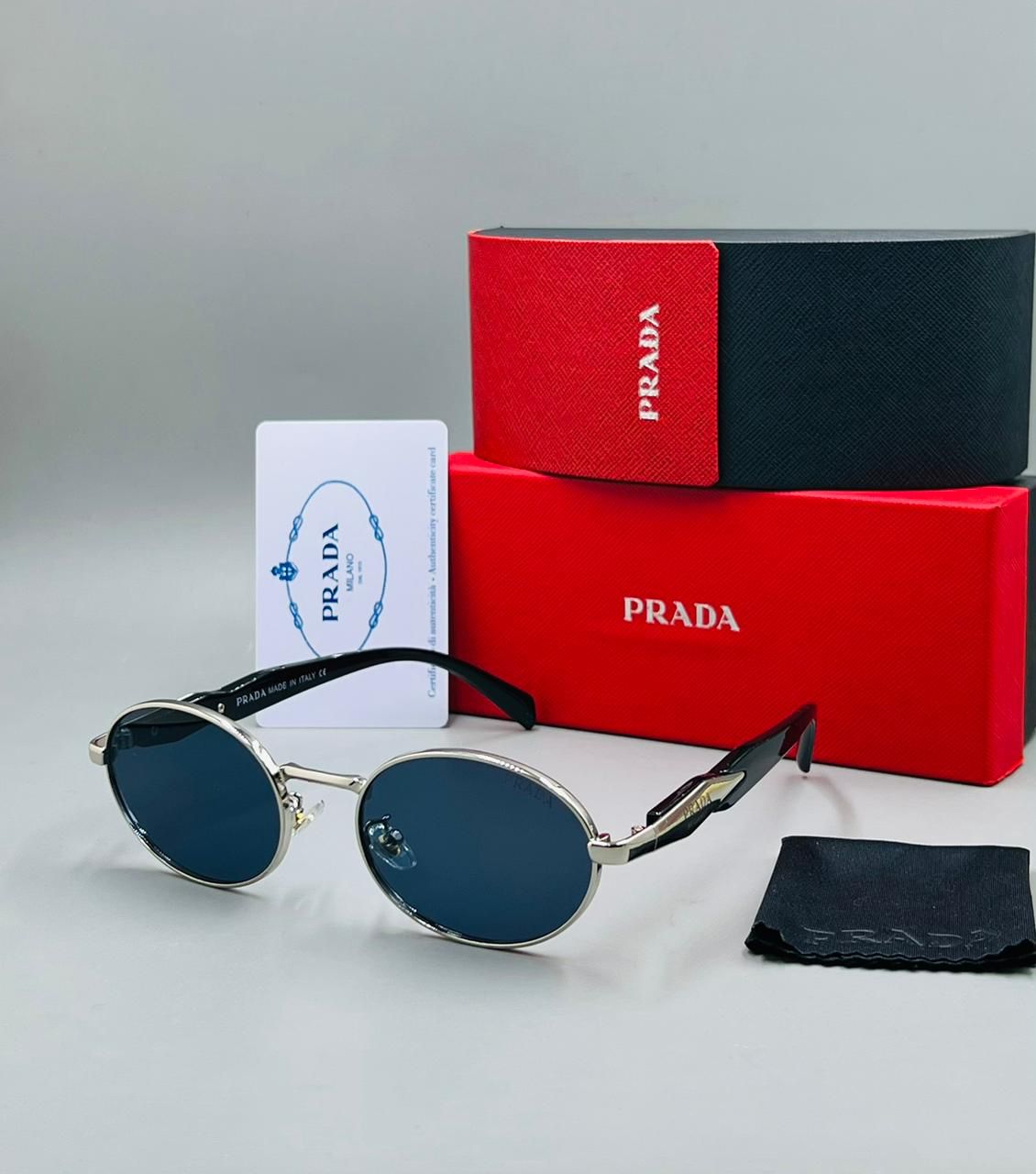 These PRD MILANO sunglasses feature a sleek silver metal oval frame with dark blue lenses – a perfect combination of vintage flair and modern fashion. Built for all-day comfort and high-end style, they’re ideal for fashion enthusiasts who demand quality and class.