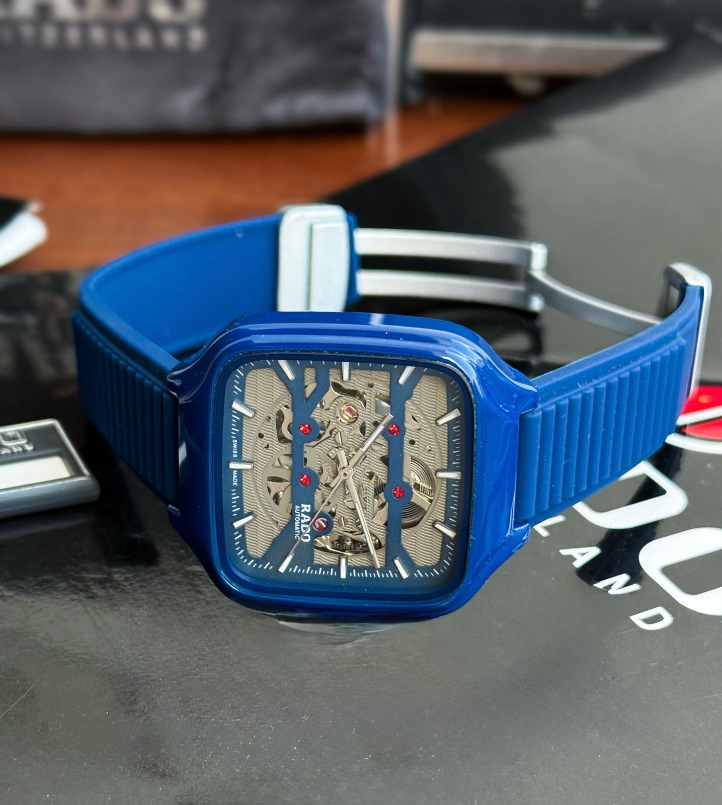 💎 Stylish Blue Case – Unique square dial with bold presence