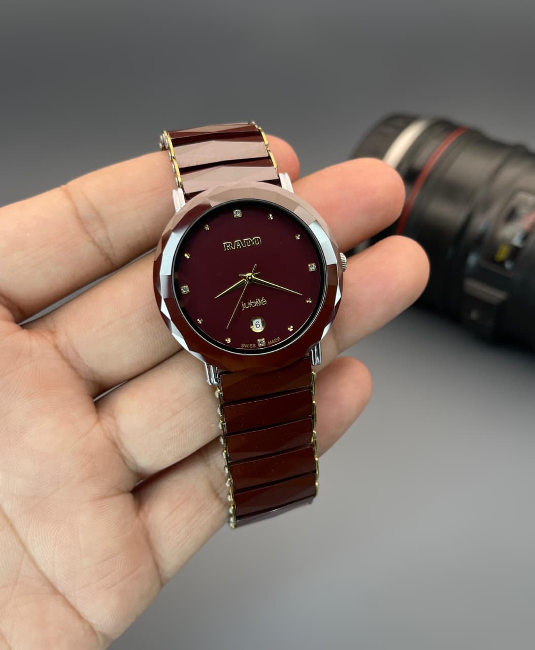 - Dial Color: Deep Wine Red with Crystal Markers ✨