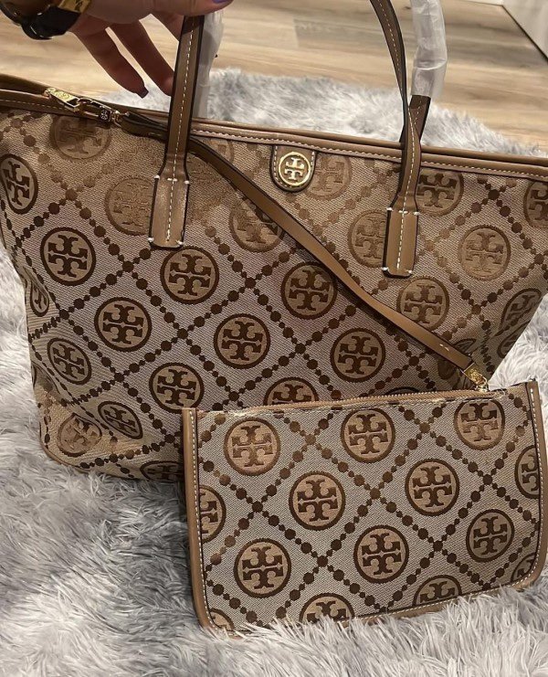 Tory Burch T Monogram Tote With OG Box & Dust Bag & Extra Pouch (Brown – 634)(BSB)