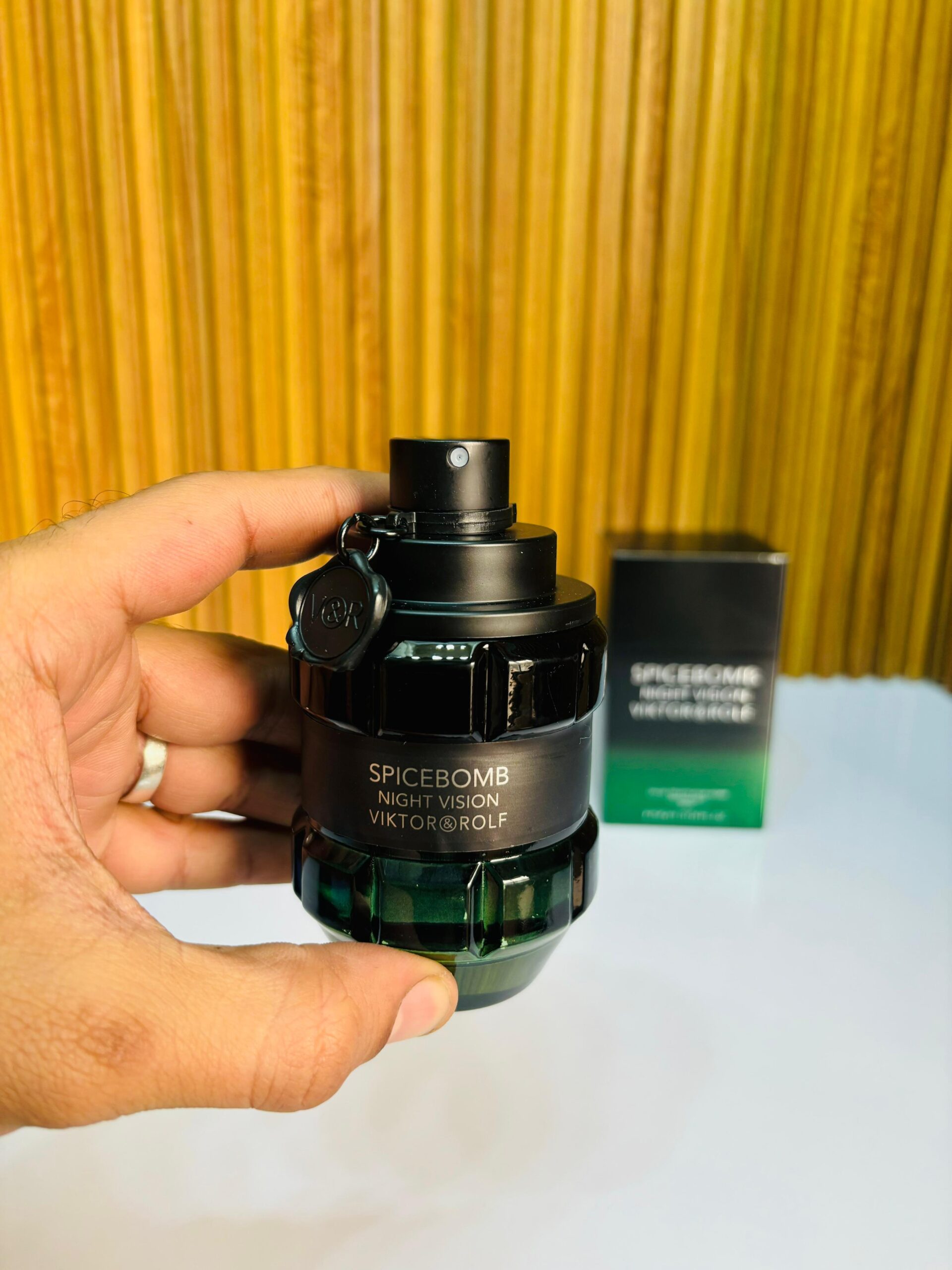 Ignite your senses with V&R Spicebomb Night Vision — a bold, masculine, ultra-captivating perfume designed for men who love intensity, freshness, and dark sensual energy. The iconic grenade-style bottle with deep black & neon-green glass makes it a true statement piece.