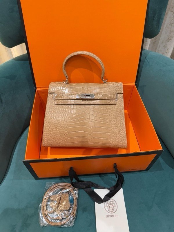 Hermes Blanc Crocodile Niloticus Khakhi Encrusted Birkin Bag With OG Box & Dust Bag (1080 Khakhi)